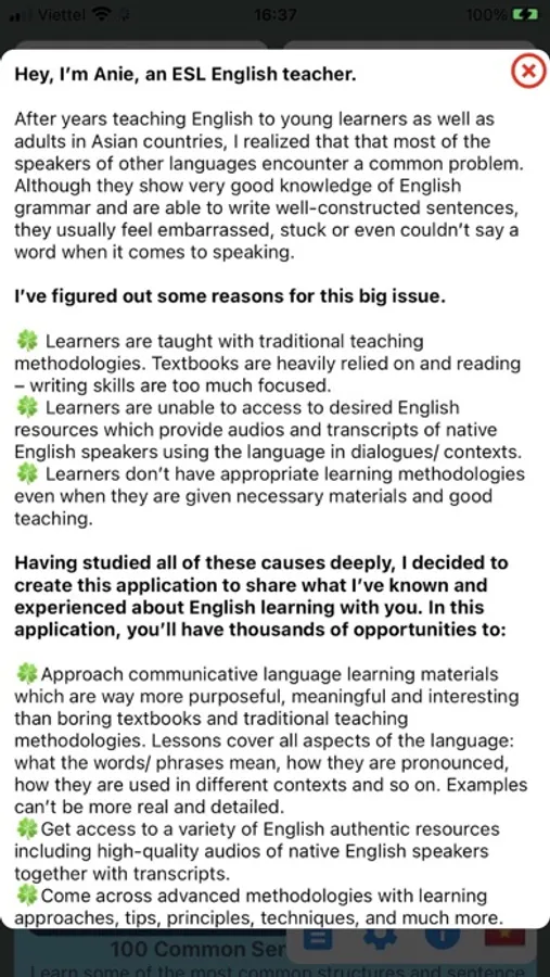 When it comes to learning English speaking, text-only lessons is NOT enough. You learn to speak English by listening and speaking, not by reading! Bear that in mind, we provide very high-quality audio recording for every single lesson.