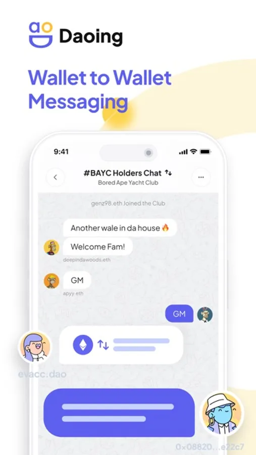 Wallet-to-Wallet Messaging: Experience seamless token transfers, access instant market insights, and send red packets directly within chats. Daoing's wallet-to-wallet messaging makes communication and transactions effortless.