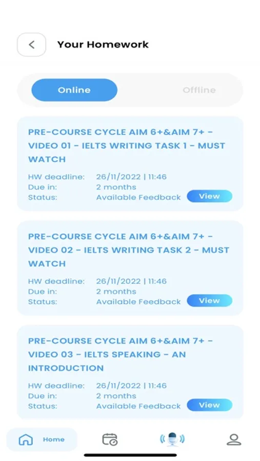 - Kiểm tra homework, xem feedback của Giáo viên, cập nhật kết quả học tập