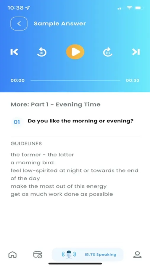 - Trợ lý Speaking ảo giúp HV tự luyện Speaking ở nhà qua phòng thi Speaking ảo, hướng dẫn trả lời, và sample audios được thu ở level 7.0-8.5 Speaking cho bộ IELTS Speaking Forecast được cập nhật mỗi quý