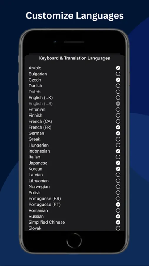 With support for an extensive range of languages, Social Keyboard ensures that language barriers are a thing of the past. So we've got you covered, whether it's Arabic, English, Spanish, or even Estonian.