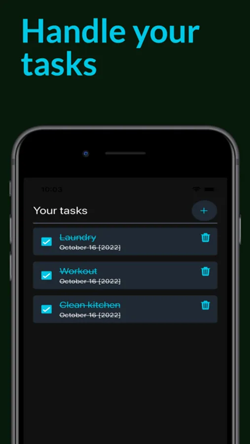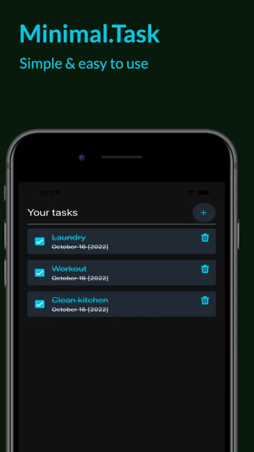 Minimalistic to do app. Handle your daily tasks easily without any unnecessary functionality.