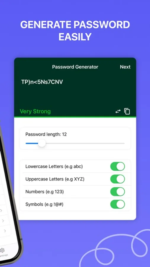 • Password Generator creates and stores strong, random, complex, and unique passwords.