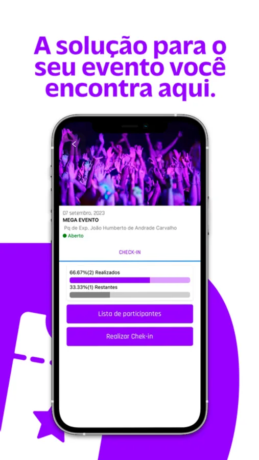 O aplicativo tem a finalidade de gerir a entrada de participantes no evento verificando a autenticidade do ingresso.