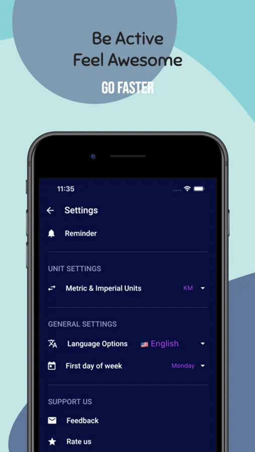 • Can set reminders for both running and drinking water