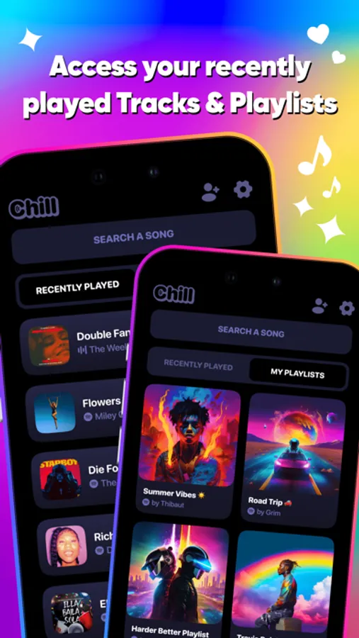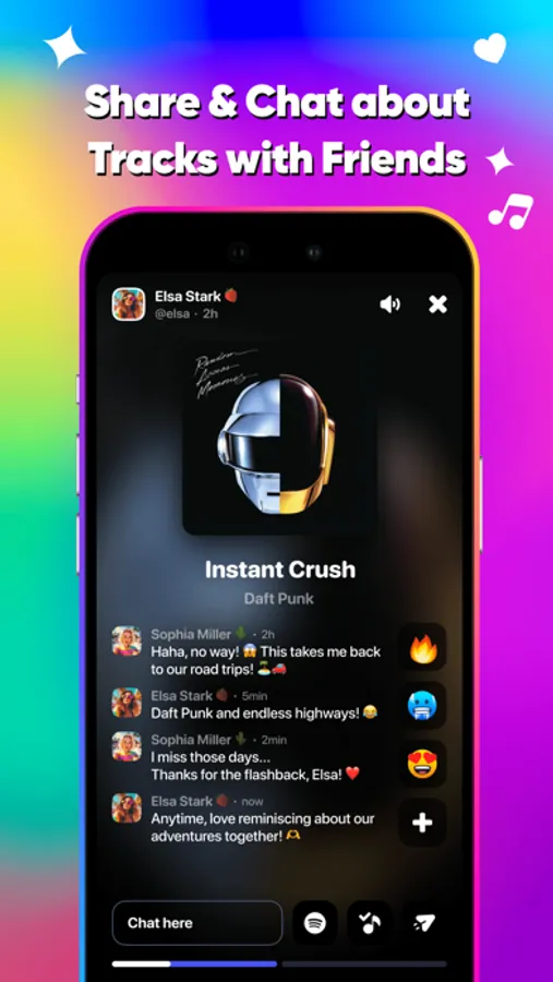 By sharing these musical moments together, Chill becomes more than just a simple exchange of songs. It's an emotional journey that strengthens bonds between friends and brings back unforgettable memories. Enter the Chill universe and let yourself be carried away by this symphony of memories, emotions, and sharing.