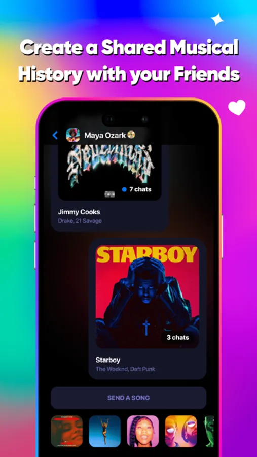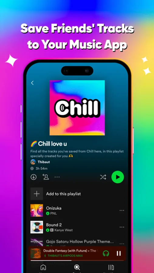 Save the shared tracks in a "Chill love u" playlist on your streaming service to find them at any time. Whether you're on the subway, in the forest, or even in space, the sounds shared by your friends will accompany you, strengthening friendship bonds around unforgettable musical moments.