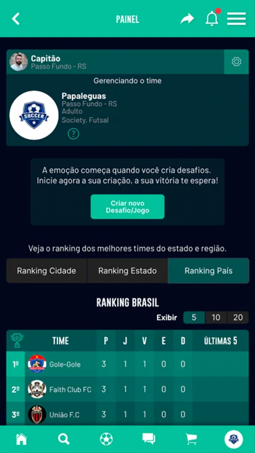 O primeiro app de desafios de times e gerenciamento de quadras esportivas!