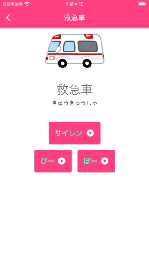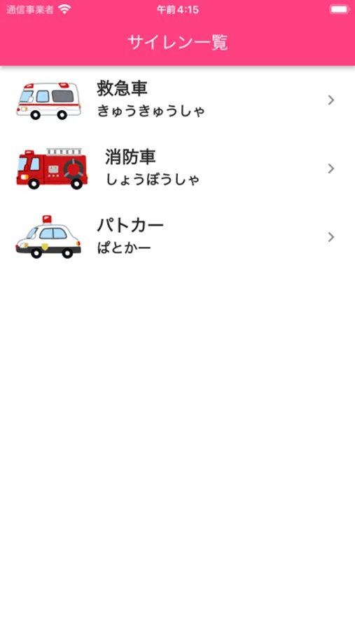 このアプリは、救急車やパトカーなど、いろいろなサイレンの音を聞くことができます!