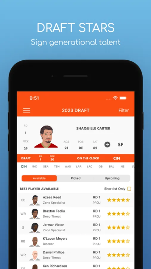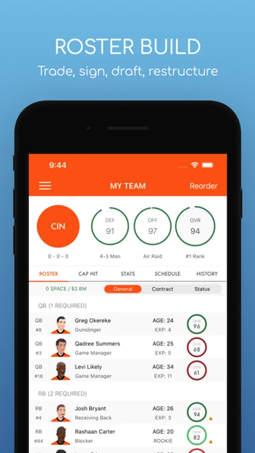 - Draft your franchise Quarterback on your way to creating a dominant roster through trades and free agency