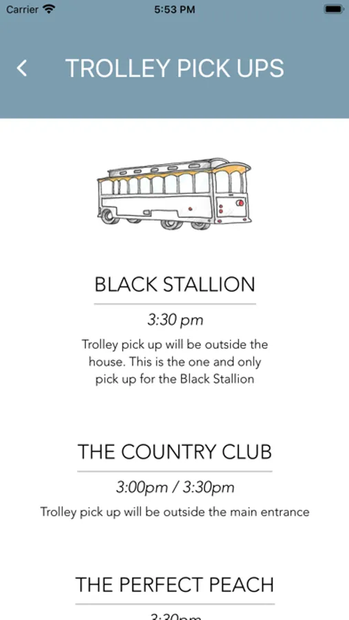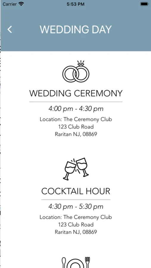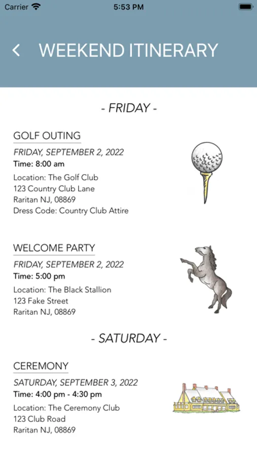 Itinerary of Events: Display the schedule of events for the day of your wedding and/or leading up to the big day.