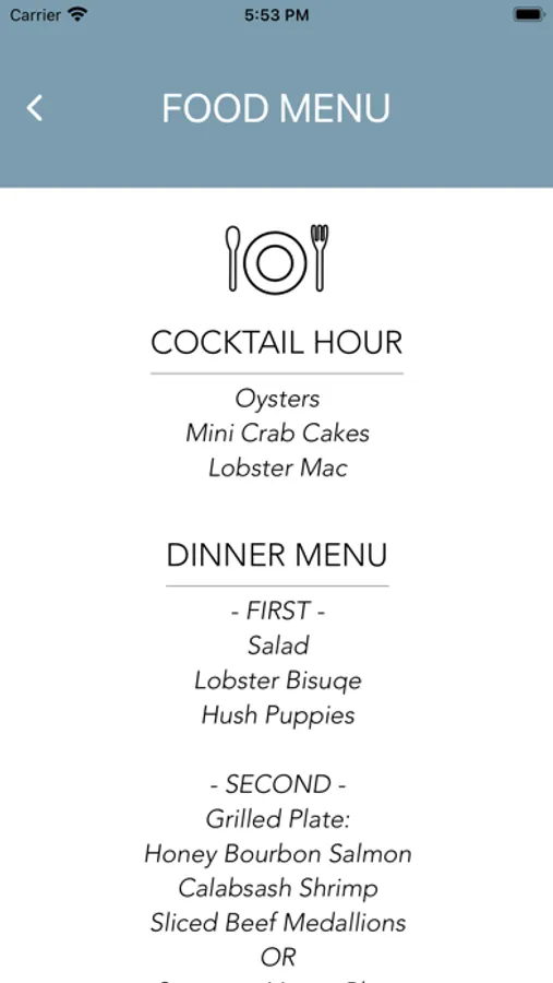 Food & Drink Menu: Share your menus to alert of any allergies and generate excitement