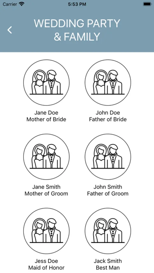 Wedding Party Information: Highlight the key players on your special day with personalized bios.