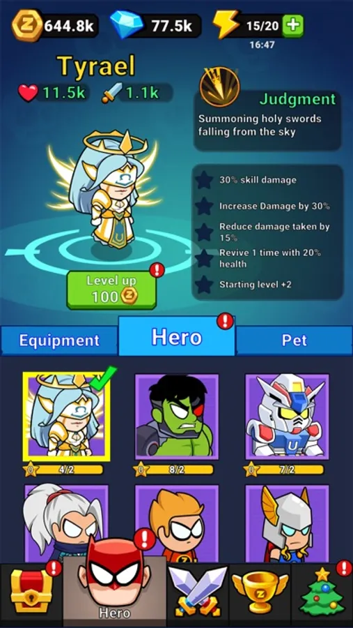 There are many characters to choose from with different skills and powers. Choose your favorite character to accompany you in many upcoming survival battles.
