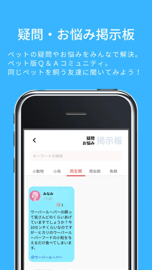 当機能は大手サイトでよく見られる「1人の疑問・お悩みにみんなが回答して解決へ導くQ&Aサービス」のペット版です。