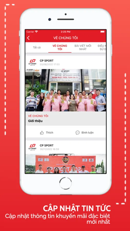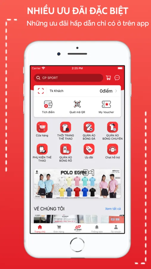 Ứng dụng CP SPORT được thiết kế tiện lợi cho các khách hàng trải nghiệm: