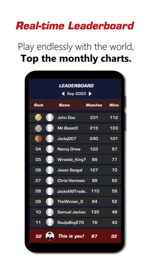 With multiple modes available including single match and versus match modes, you will find yourself addicted once you start beating your opponents! A global, real-time leaderboard keeps you updated on your progress and rank as you compete with thousands of other fans from across the globe.