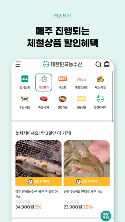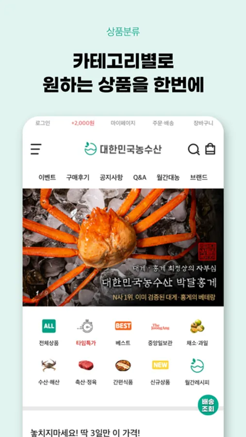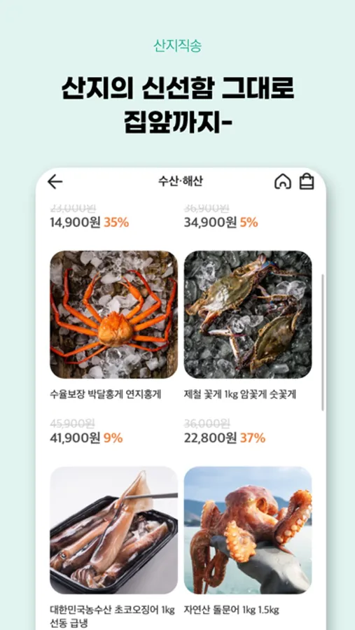 합리적인 가격과 산지의 신선함 그대로 집에서 편리하게 받아보세요.