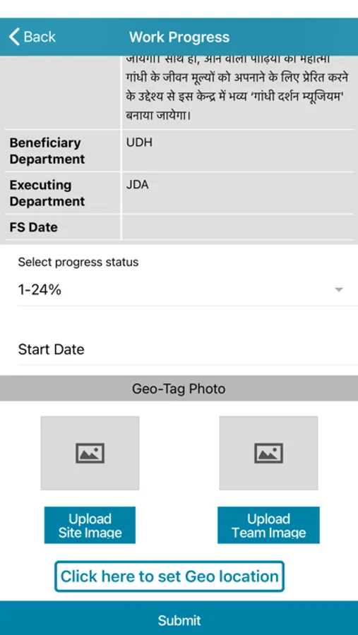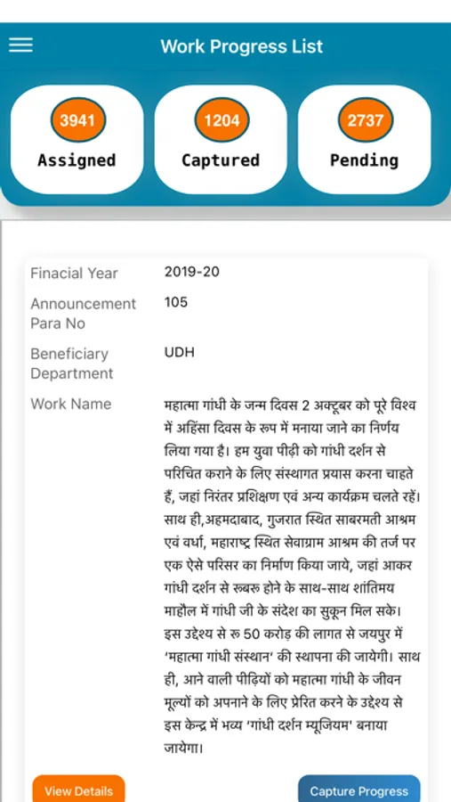 This application is developed to closely monitor the implementation of all Budget announcements of the honorable chief minister of Rajasthan. Using this the users would capture the progress of all such infrastructure related works.New user first register on SSO portal.