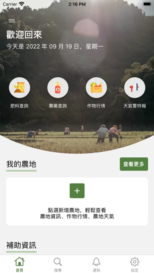 主要功能包含:田間作業代辦清單、農業市場拍賣價格查詢、農業氣象通知、肥料與農藥查詢及農業補助資訊、作物適栽性查詢、農地土壤分析、農業新聞、二十四節氣、農民曆等功能。