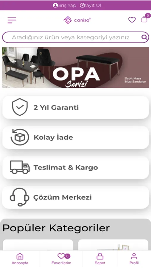Bu mobil uygulama ile Canisa.com.tr adresinden alışveriş yapabilir ayrıca güncel kampanya ve fiyatlardan haberdar olabilirsiniz.