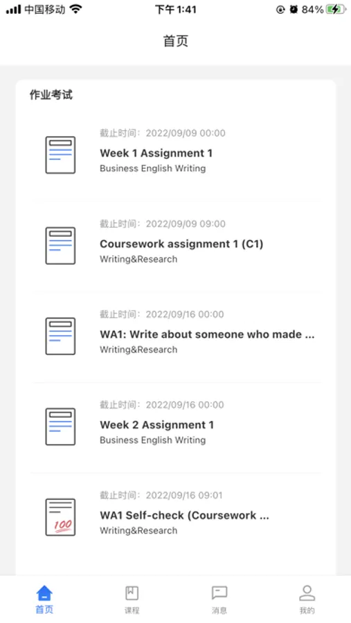 ● 接收课程公告通知。