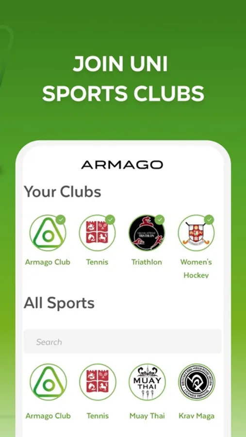 Students! Getting involved in UNI sport just got a WHOLE lot easier. The Armago app allows you to join clubs at your university and EASILY find all the information you need.