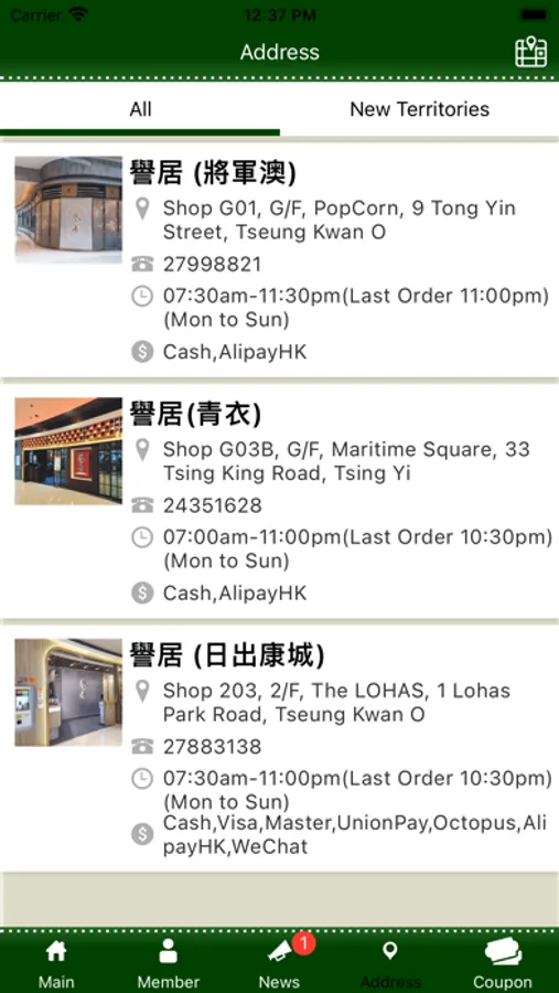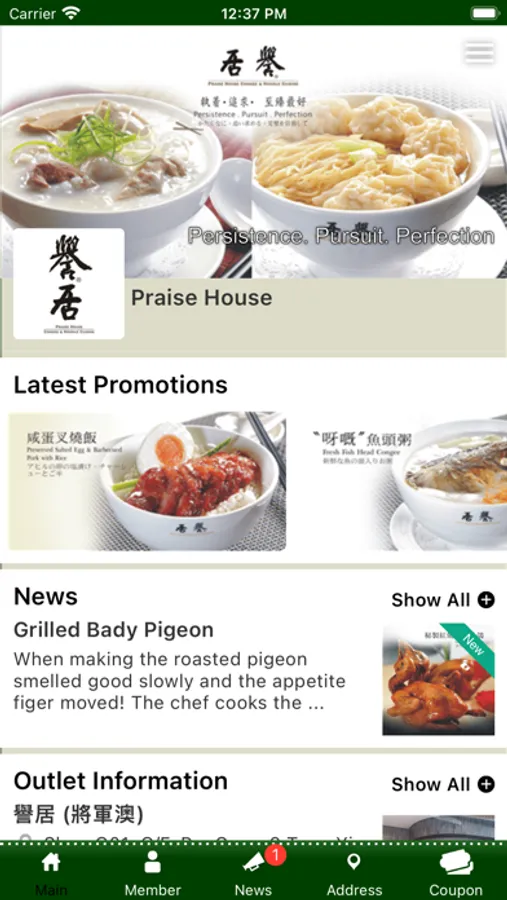 Show the location of branches of Praise House, as well as business hour, contact number,