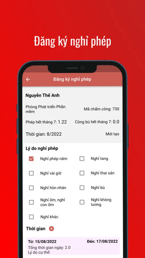 Ứng dụng HR BRG GROUP có những chức năng: Xem ngày công bù, phép, chấm công, đăng ký và phê duyệt nghỉ phép...