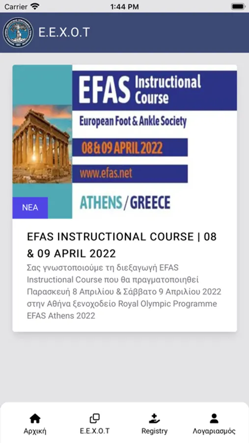 Εφαρμογή της Ελληνικής Εταιρείας Χειρουργικής Ορθοπαιδικής και Τραυματολογίας με σκοπό την ενημέρωση της Ορθοπαιδικής Κοινότητας για τις Επιστημονικές και Εκπαιδευτικές Εκδηλώσεις καθώς και για το Πρόγραμμα Δραστηριοτήτων Εταιρικής Κοινωνικής Ευθύνης της ΕΕΧΟΤ και των δραστηριοτήτων ενημέρωσης του κοινού για θέματα Μυοσκελετικών Παθήσεων