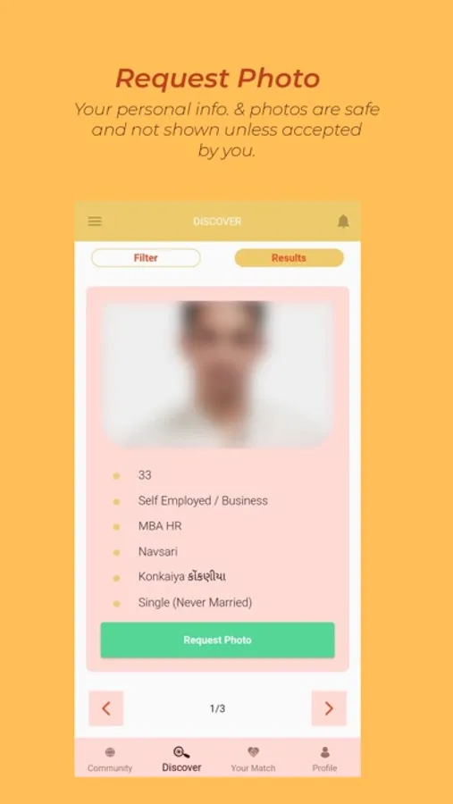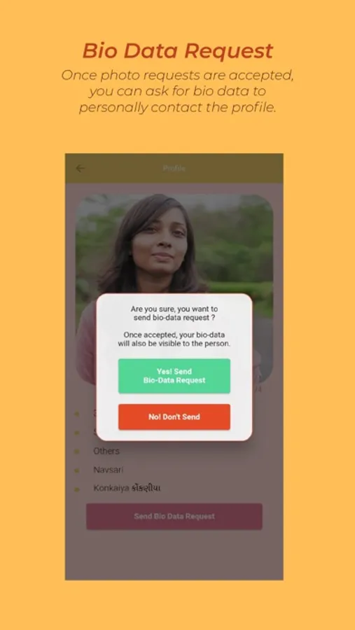 Every profile on this app is verified and only limited data of any profile will be publicly shown. Later, only on the users approval, the pictures and bio-data would be visible to other members, making it a safest place for our community members to find appropriate match.
