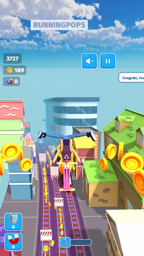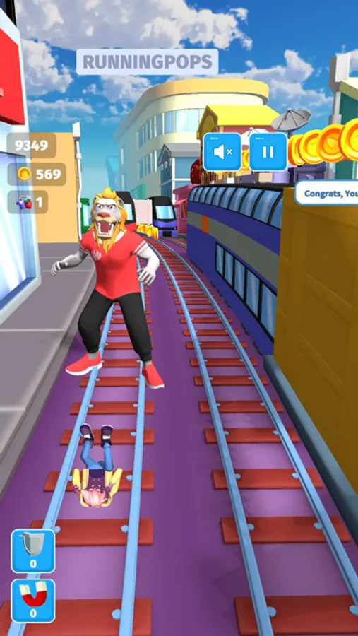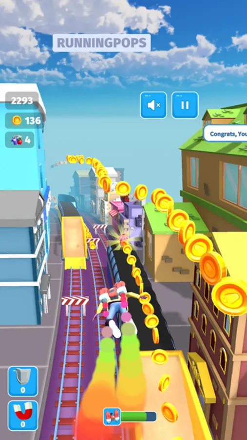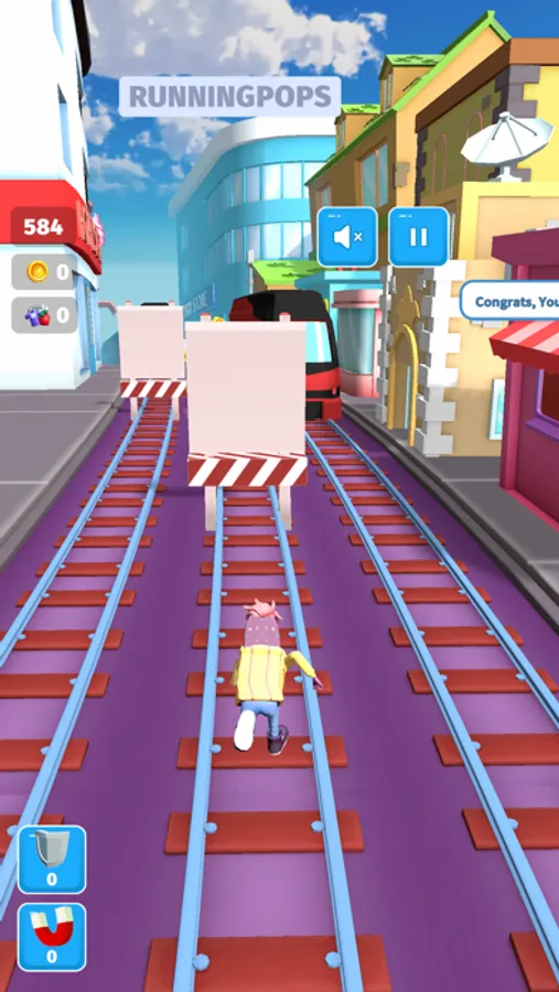 Running Pops is an addicting infinity running game. The goal is to as far as you can, do not be caught by Mr Right, so you can reach the top 10 scorers.