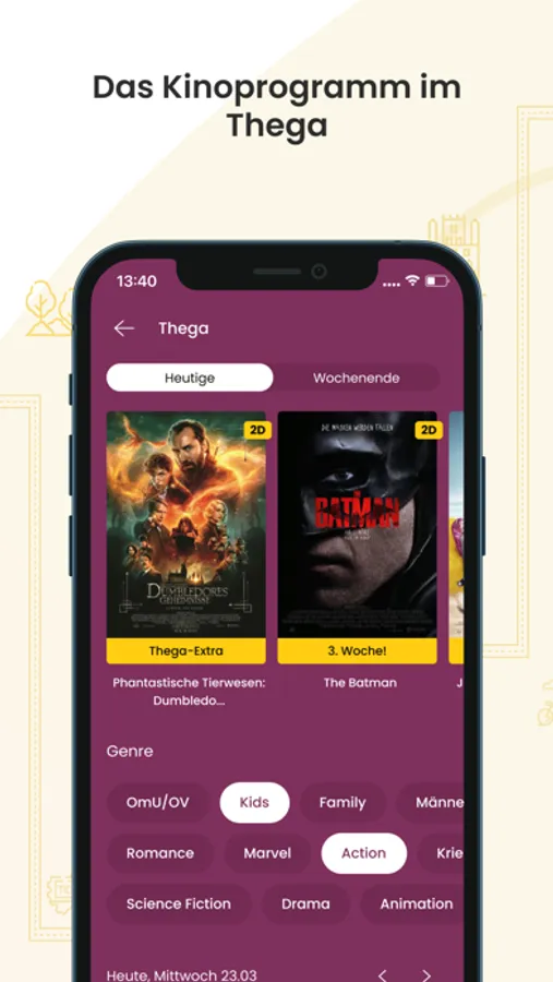Mit hiApp auf Deinem Smartphone bist Du immer über das aktuelle Kinoprogramm des Thega informiert. Du findest alle Info´s zu Deinen Lieblingsvereinen wie den Helios Grizzly´s, dem VfV 06 Hildesheim, den Hildesheim Invaders oder dem Handballteam von Eintracht Hildesheim.