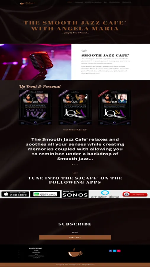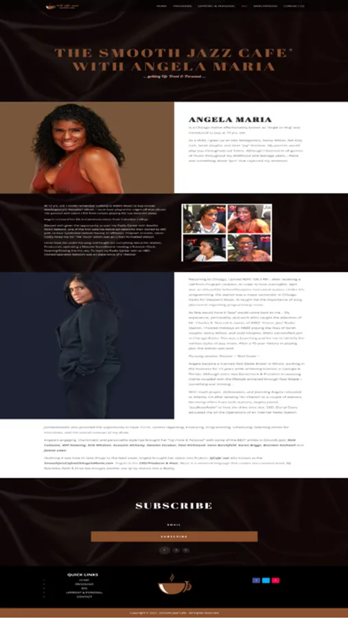 The Smooth Jazz Cafe’ with Angela Maria is your place for the absolute BEST in Smooth Jazz while meeting your favorite artist with Up Front & Personal Conversations.