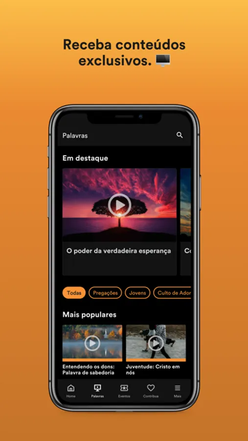- Siga a agenda e fique por dentro de tudo que acontece na igreja, inscreva-se em eventos e tenha seus ingressos sempre com você.