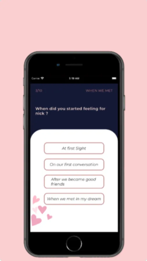 Enjoying our Couples app is simple and easy. Just connect with your partner, answer about yourself, and then your partner will guess your answers. If it's correct, awesome! If not, then super awesome because you just got a conversation topic.