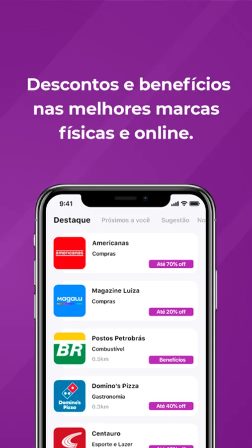 O Clube Avanza te dá descontos em compras online e em lojas físicas de todo o Brasil. Com o app do nosso Clube de Vantagens, você acessa as principais marcas do país e utiliza o desconto na hora de pagar, de maneira rápida e sem custo.