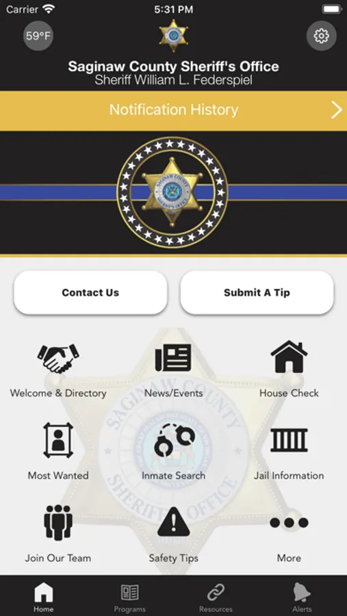 The Saginaw County Sheriff’s Office, MI mobile application is an interactive app developed to help improve communication with area residents. The Saginaw County Sheriff App allows residents to connect with the Saginaw County Sheriff’s Office by reporting crimes, submitting tips, and other interactive features, as well as providing the community the latest public safety news and information.