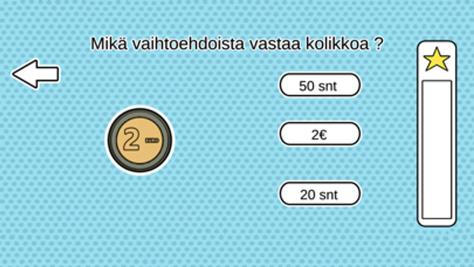 Rahan käyttö-osiossa opetellaan rahankäyttöä sekä kolikoiden ja seteleiden tunnistamista.