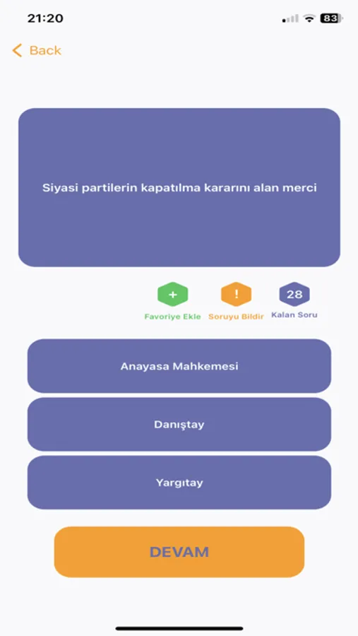 Uygulamada her ders için yeterli sayıda soru bulunmaktadır.