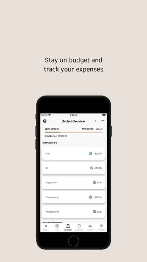 - Budget Tracker. Add all the planned expenses by category and update the status when it is paid. The expenses overview and the amount of the remaining budget help to stay on track.