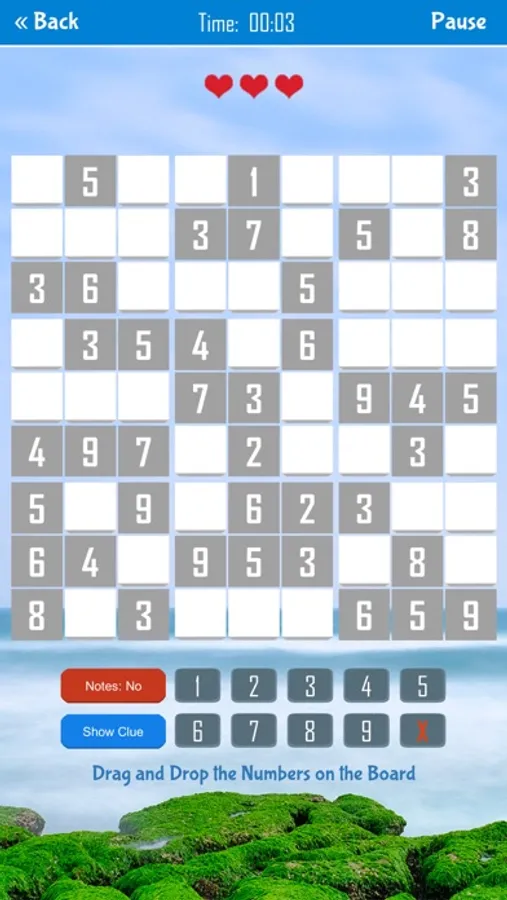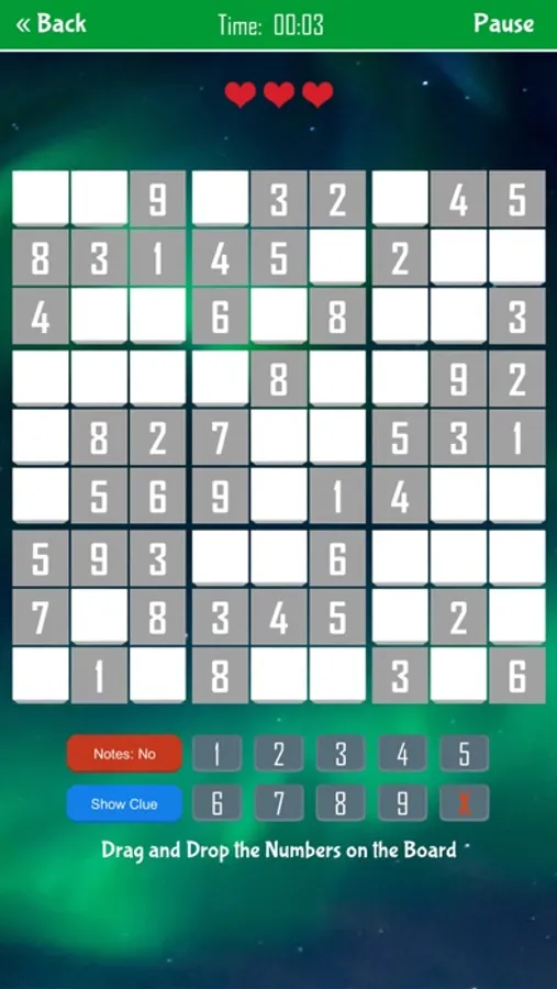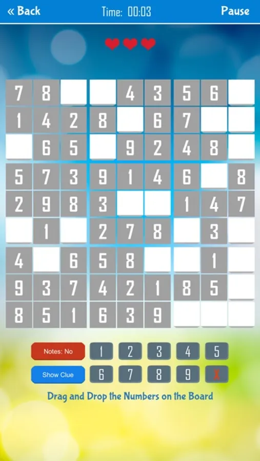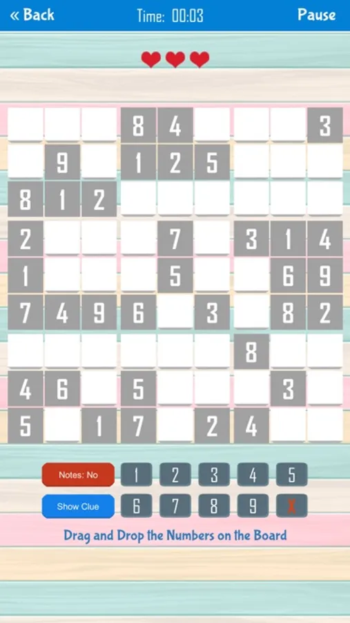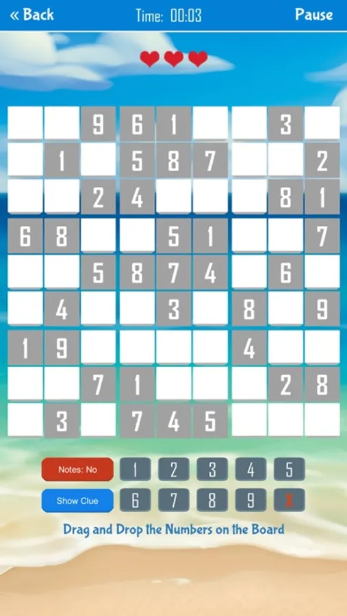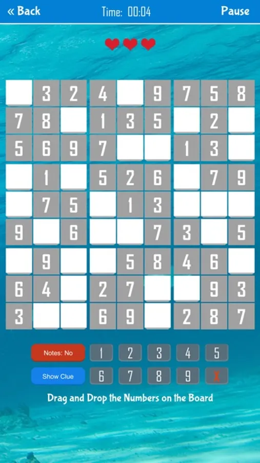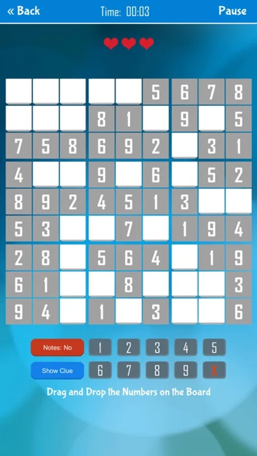 Sudoku where you have to drag and drop the numbers on the board to solve the puzzles.