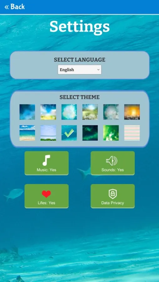 You can customize the appearance of the game with 12 themes such as bokeh backgrounds of different colors, northern lights, wooden, beaches...