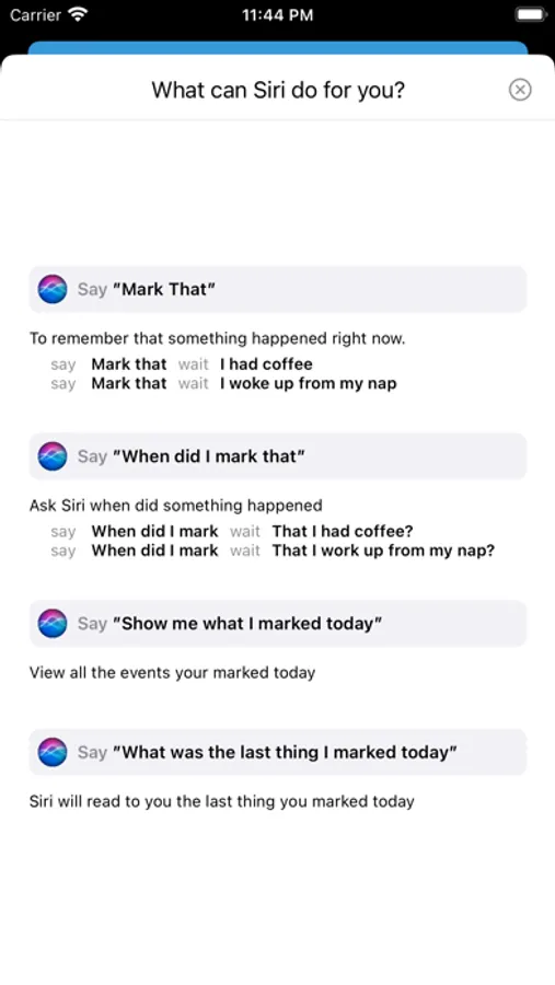 say, Hey Siri, When did I mark that, for Siri to ask which event you're interested in, and then continue, for example: