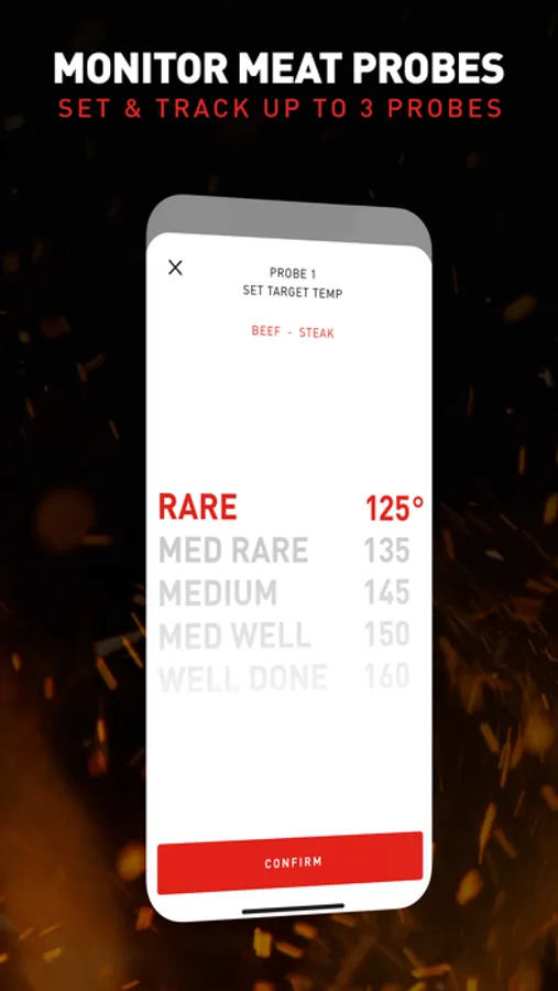 o Notifications & Alerts: Receive notifications when target time and temperatures are reached on the grill or meat probes. The app will also alert if the grill dips below or exceeds the target temperature.