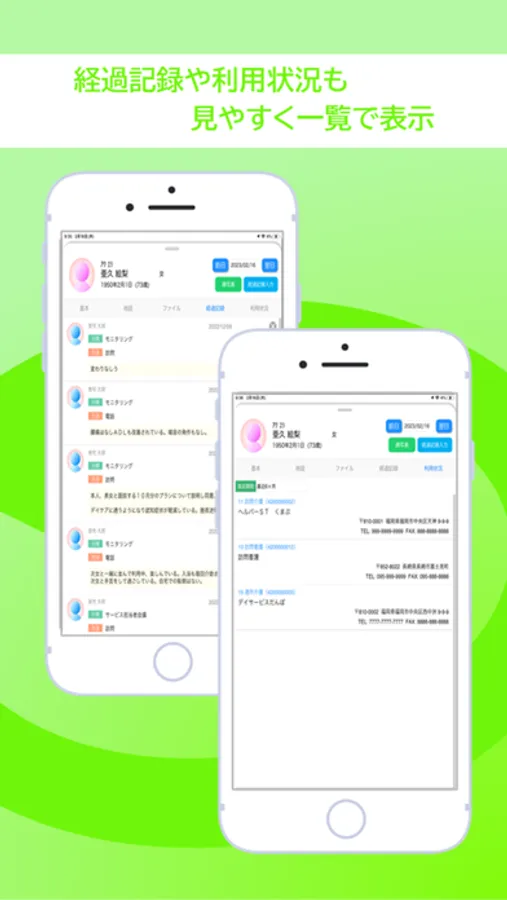 ・利用者の連絡先、住所などの情報を一覧で表示。
