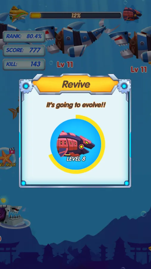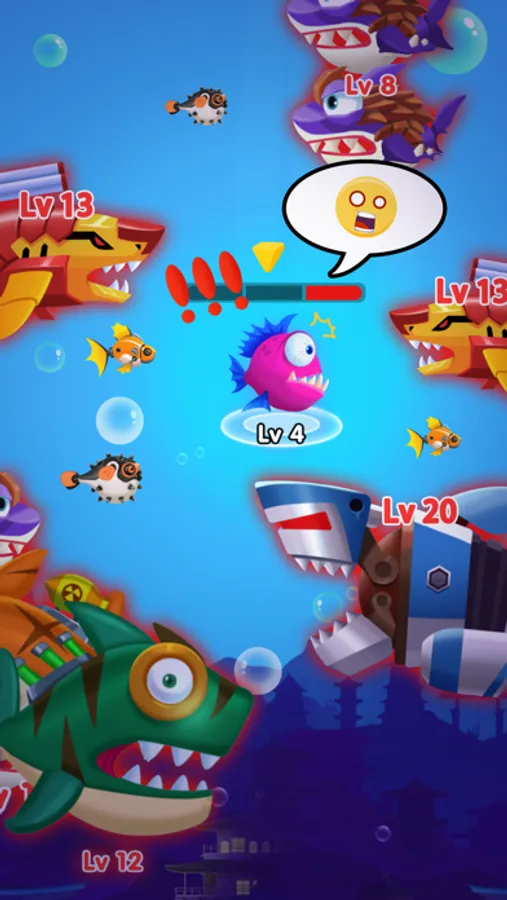 Fish Evolution is a casual mobile game for passing levels; you are a little fish, lost in the deep sea, and there are many ferocious sea beasts here. You have to do everything you can to survive, it is not easy.