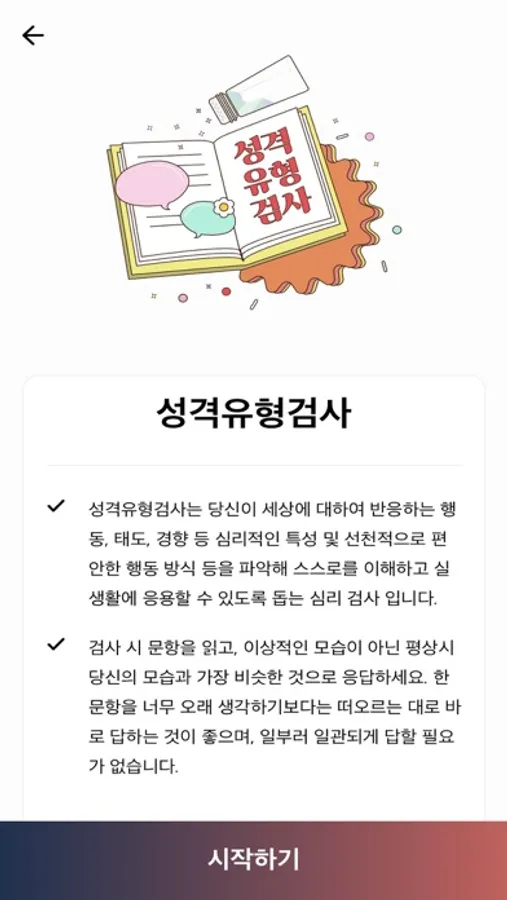 ·세상에 대하여 반응하는 행동, 태도, 경향 등 심리적인 특성을 알아볼 수 있는 성격유형 검사