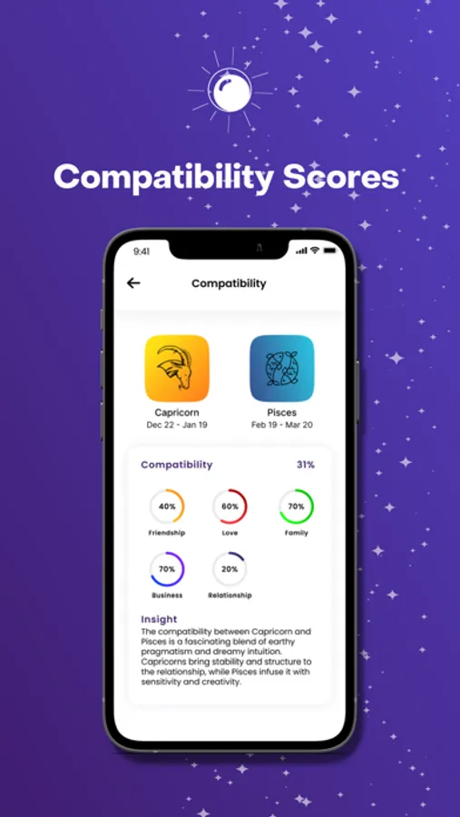 ∙Compatibility Scores: Assess your potential for a lasting and fulfilling relationship with our compatibility scores. Understand the dynamics between you and your matches, and make informed decisions about pursuing connections that align with your astrological profile.