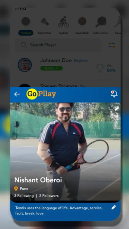 GoPllay is a cool social platform for football, badminton, tennis & other sports.